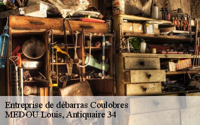 Votre grenier ou votre cave commence-t-il à être encombré par des objets qui ne vous servent plus et qui commencent à occuper de la place? Vous pouvez faire appel à MEDOU Louis, Antiquaire 34.C’est une entreprise de débarras qui peut récupérer ces objets chez vous. Si vous sollicitez ses services et il viendra chez vous pour évaluer l’état des objets leur volume et les récupérera à l’heure et à la date qui vous convient. Contactez-le si vous résidez à Coulobres, dans le 34290.